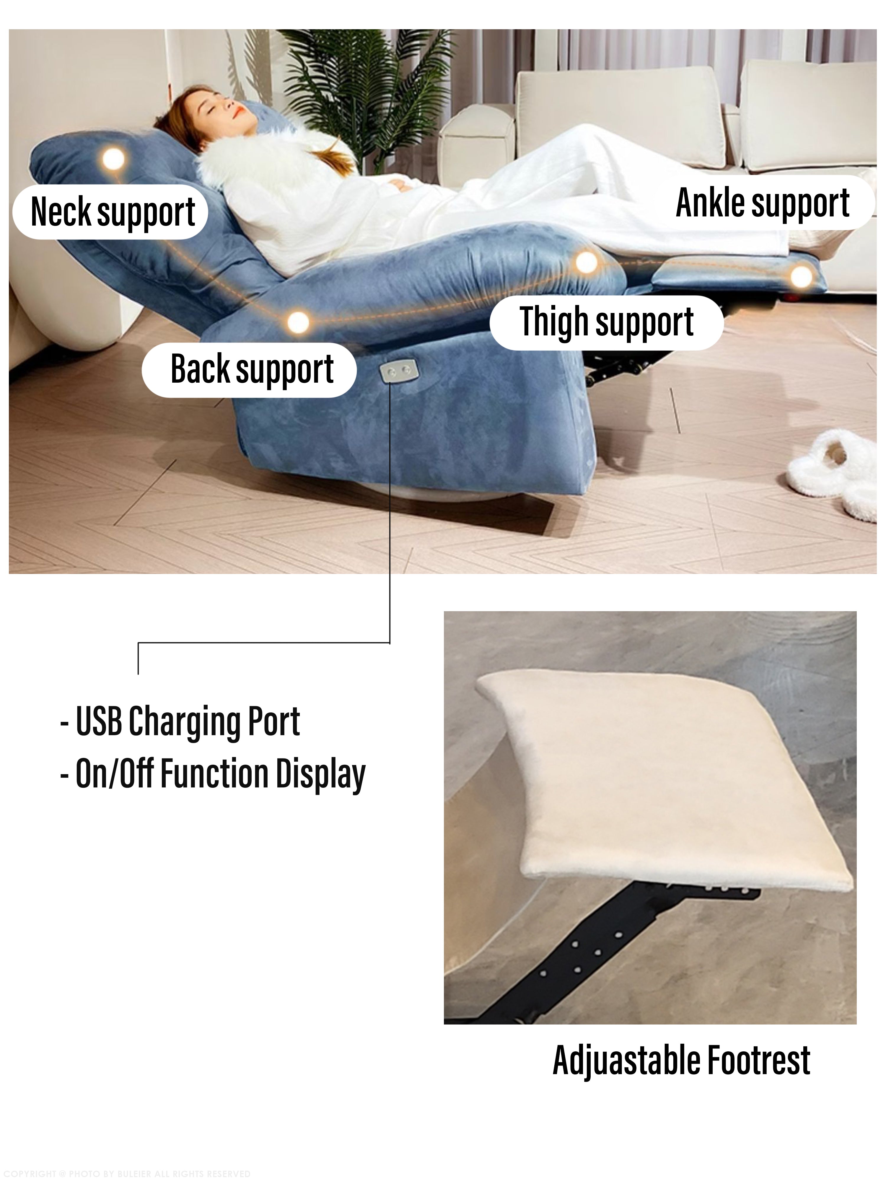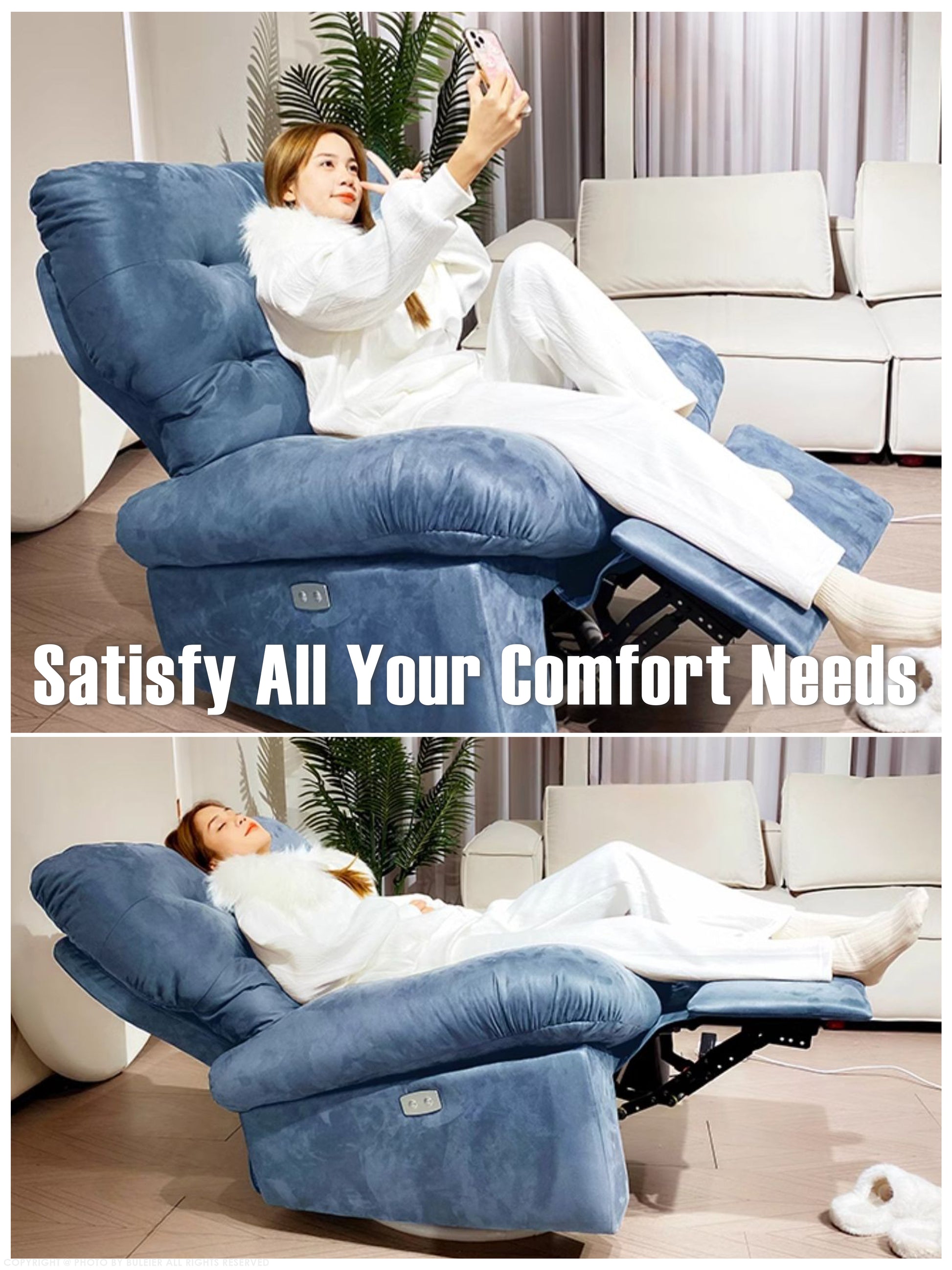 Imagine sinking into this plush cloud-like electric sofa, enveloped by the soft embrace of its high-quality fabric upholstery. Feel the stress melt away as you adjust the electric rocking function to your perfect comfort level.