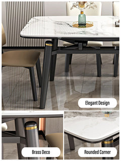 Material: Sintered stone / Carbon Steel / PU Leather / Solid Wood