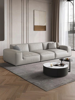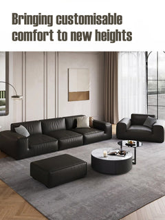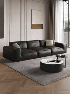 Elevate your living room into a sanctuary of comfort and sophistication with our Modern Black Full Leather Sofa. The sleek, minimalist design boasts clean lines and a low-profile silhouette that creates a feeling of spaciousness and complements any décor style.