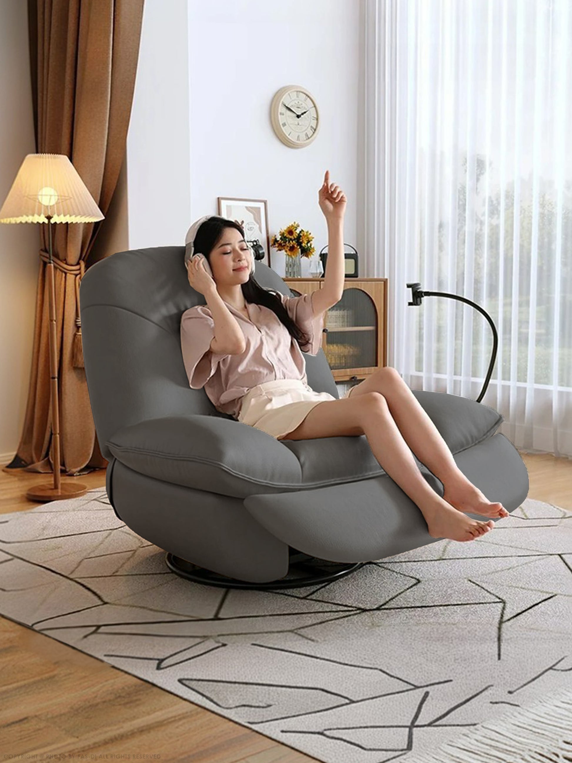 Unwind in pure luxury with our recliner chair. Sink into plush leather and enjoy the ultimate relaxation experience. Its sleek design and adjustable features create the perfect spot to de-stress after a long day.
