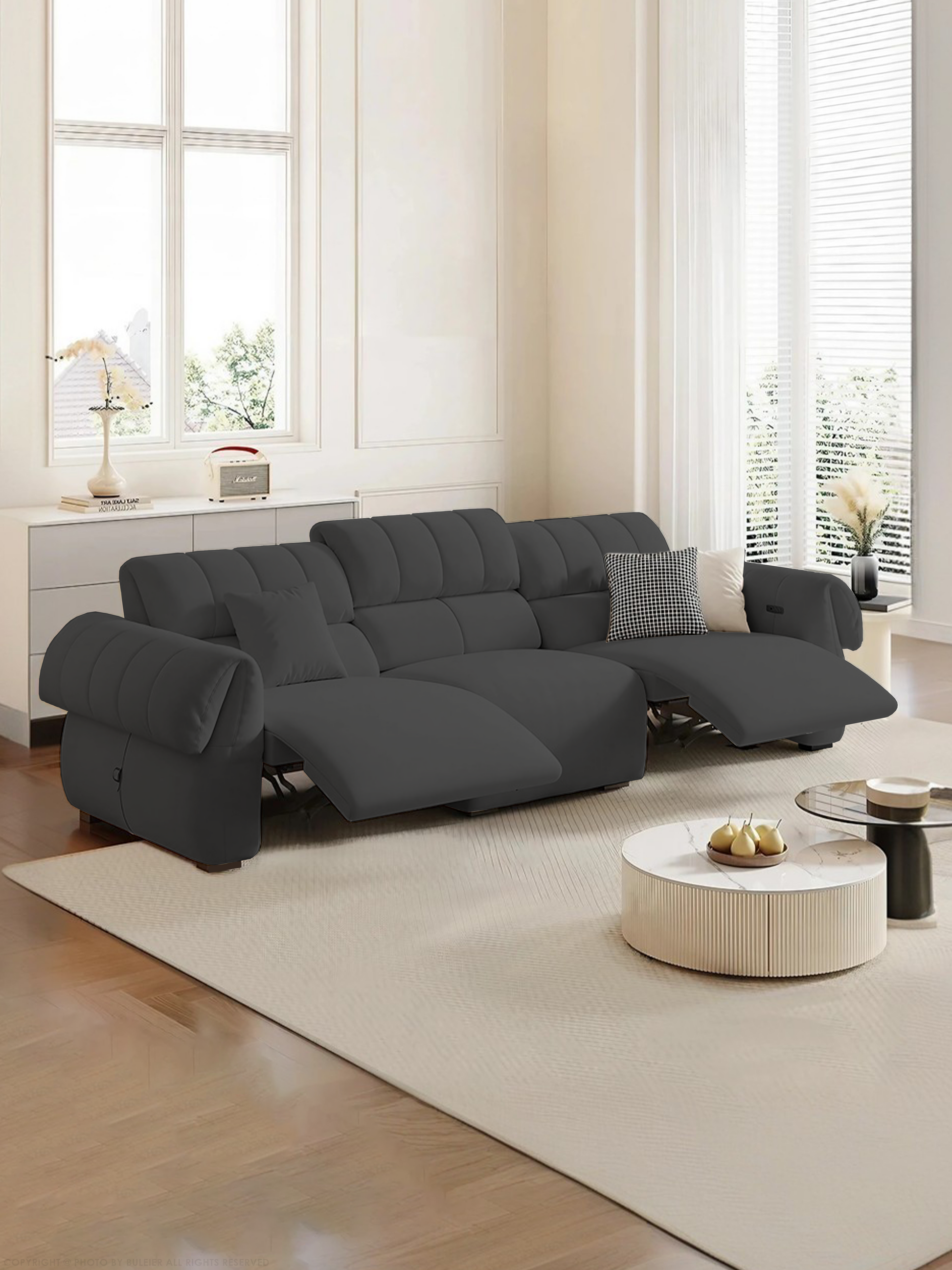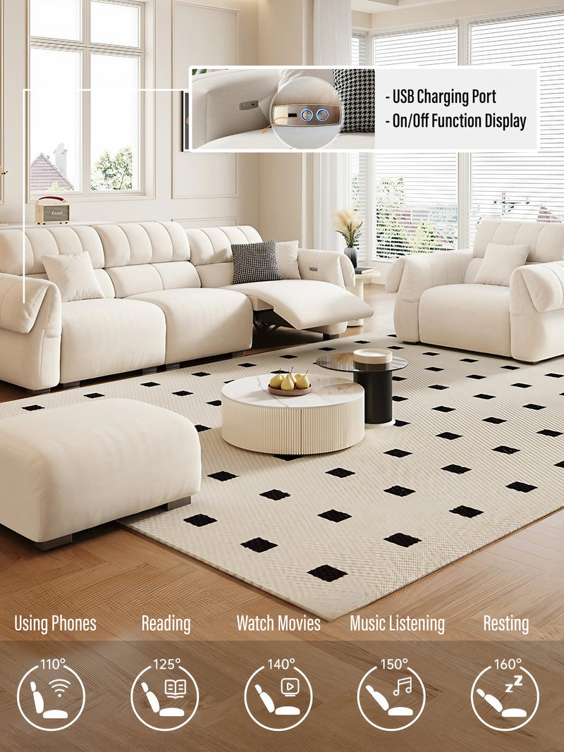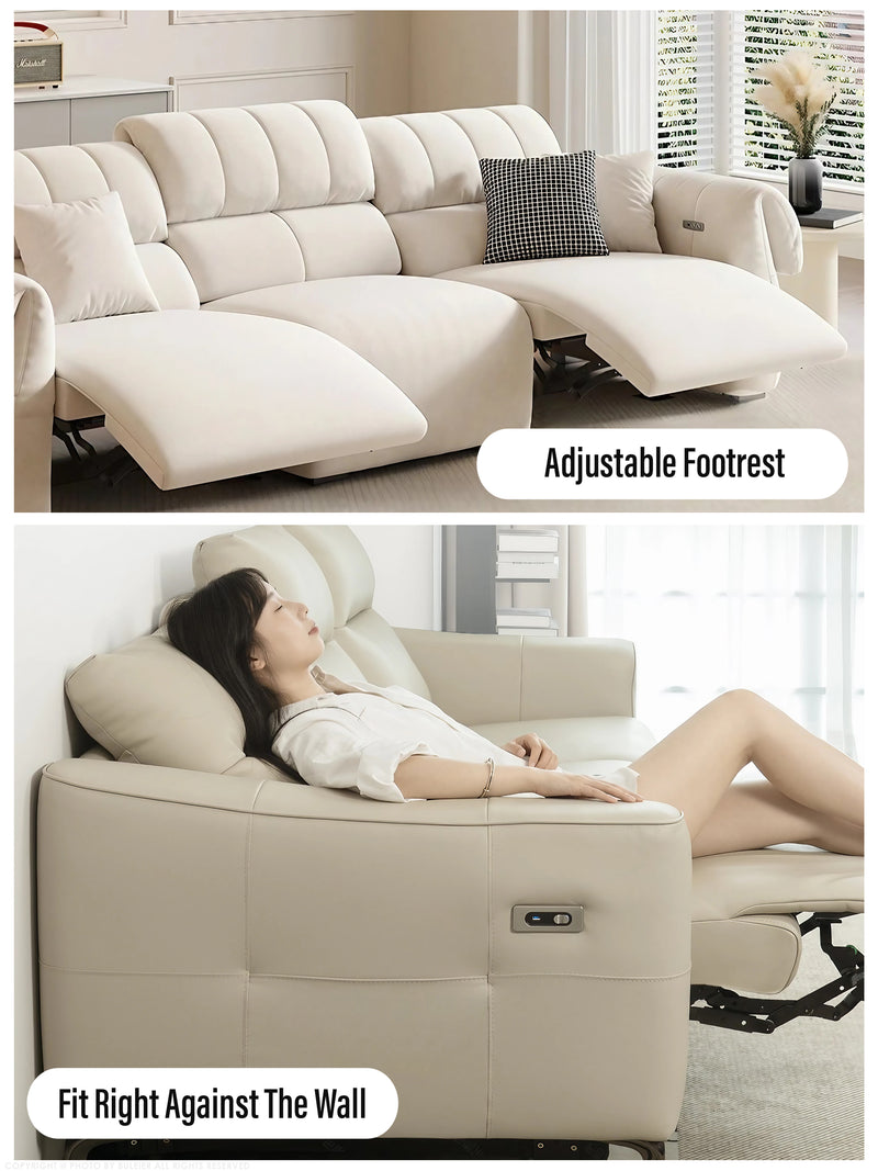 Experience the epitome of relaxation with our innovative Wall-Hugging Multifunctional Sofa, a luxurious and versatile piece that effortlessly transforms from a seating ensemble to a luxurious lounger with just one touch. This sofa features a space-saving design, premium materials and inviting atmosphere perfect for unwinding after a long day or hosting guests.