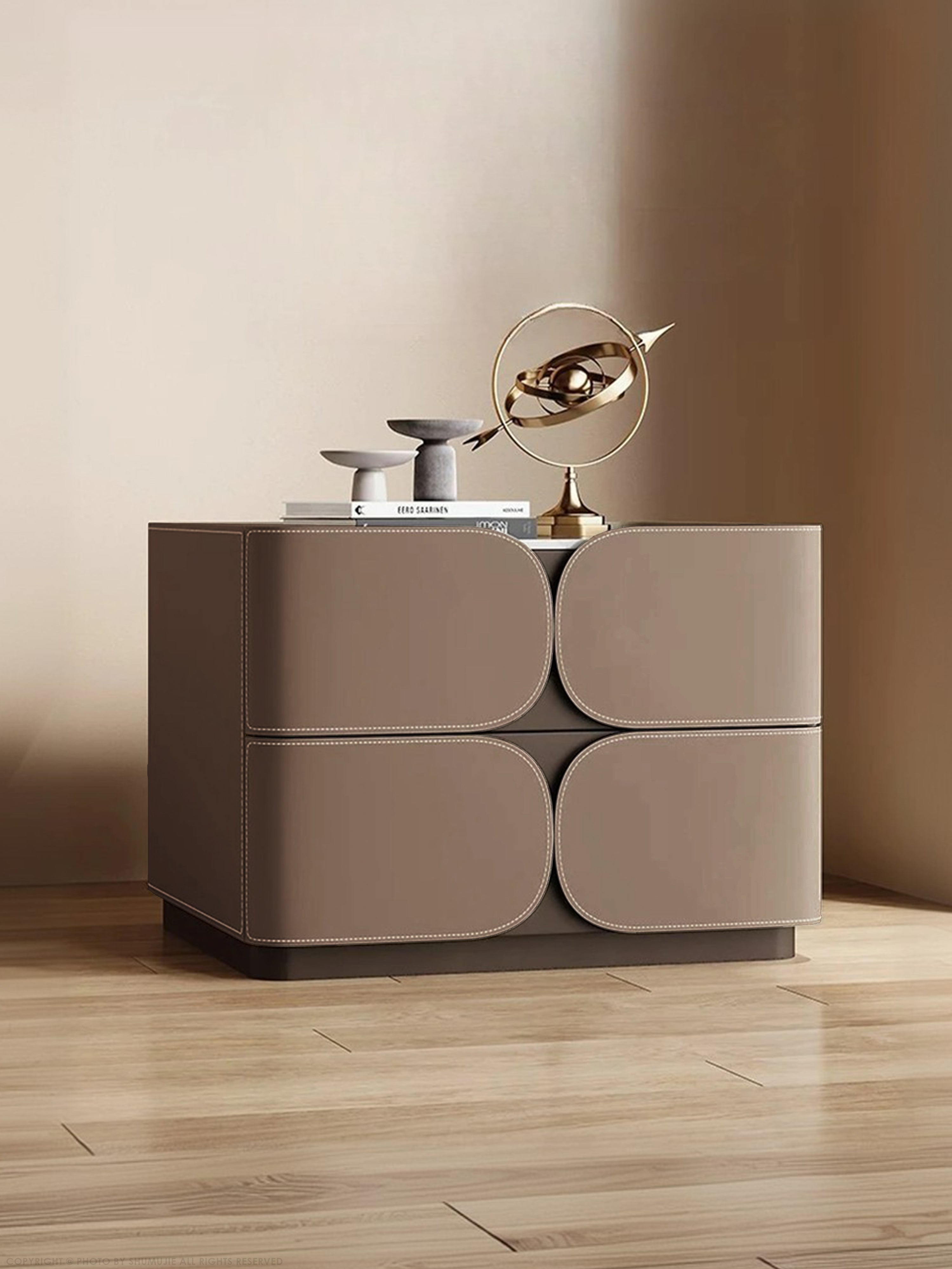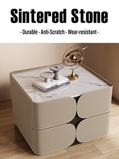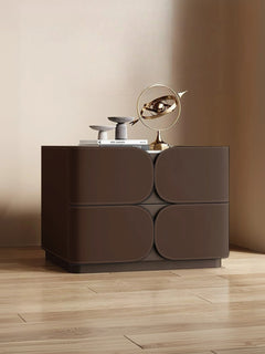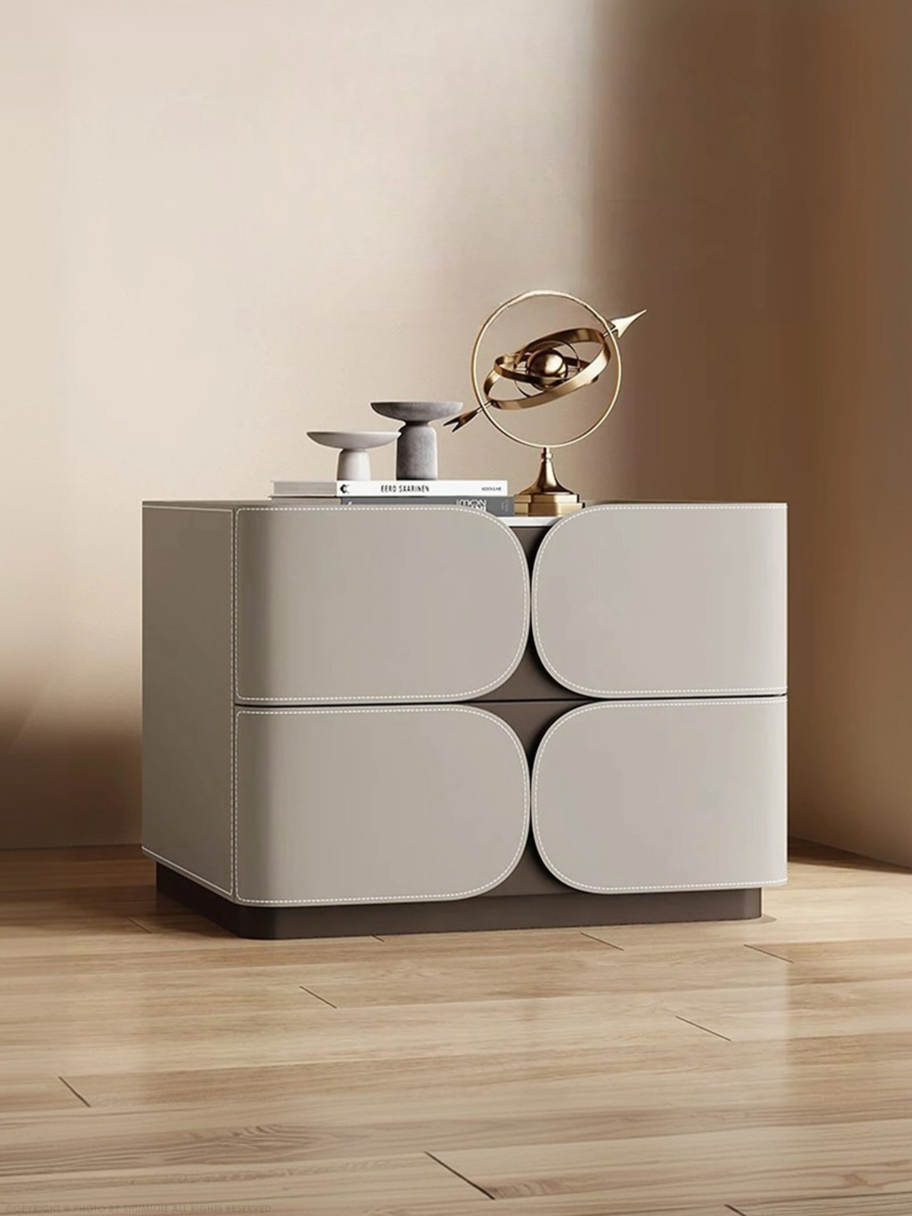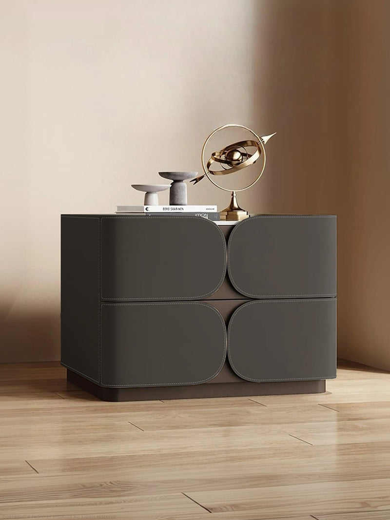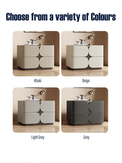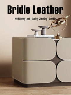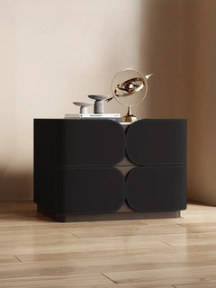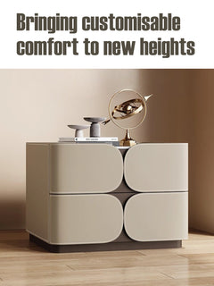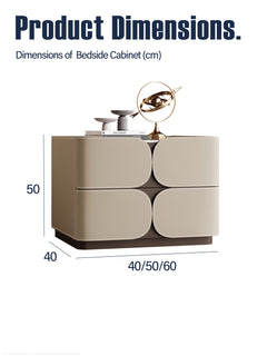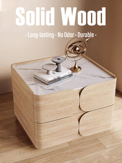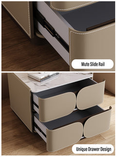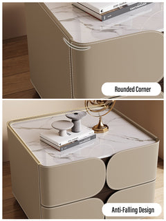 This elegant nightstand features a white marble top and curved, soft-close drawers. The sleek design and neutral colour palette make it a versatile piece that complements any bedroom style. The spacious drawers offer ample storage for your bedside essentials.