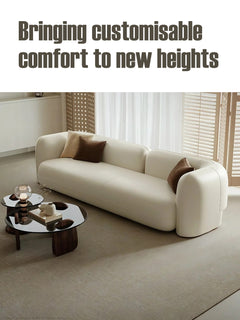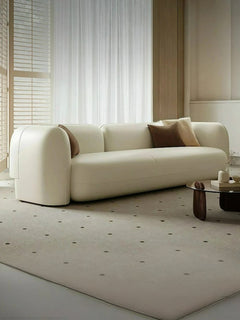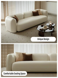 Designed for contemporary living spaces, this spacious sofa seamlessly blends style and comfort. Its plush cushions and sleek lines create an inviting haven for relaxation, while the contrasting textures and patterns add a touch of personality. Elevate your living room and transform your space into a chic and stylish retreat with this stunning leather sofa.