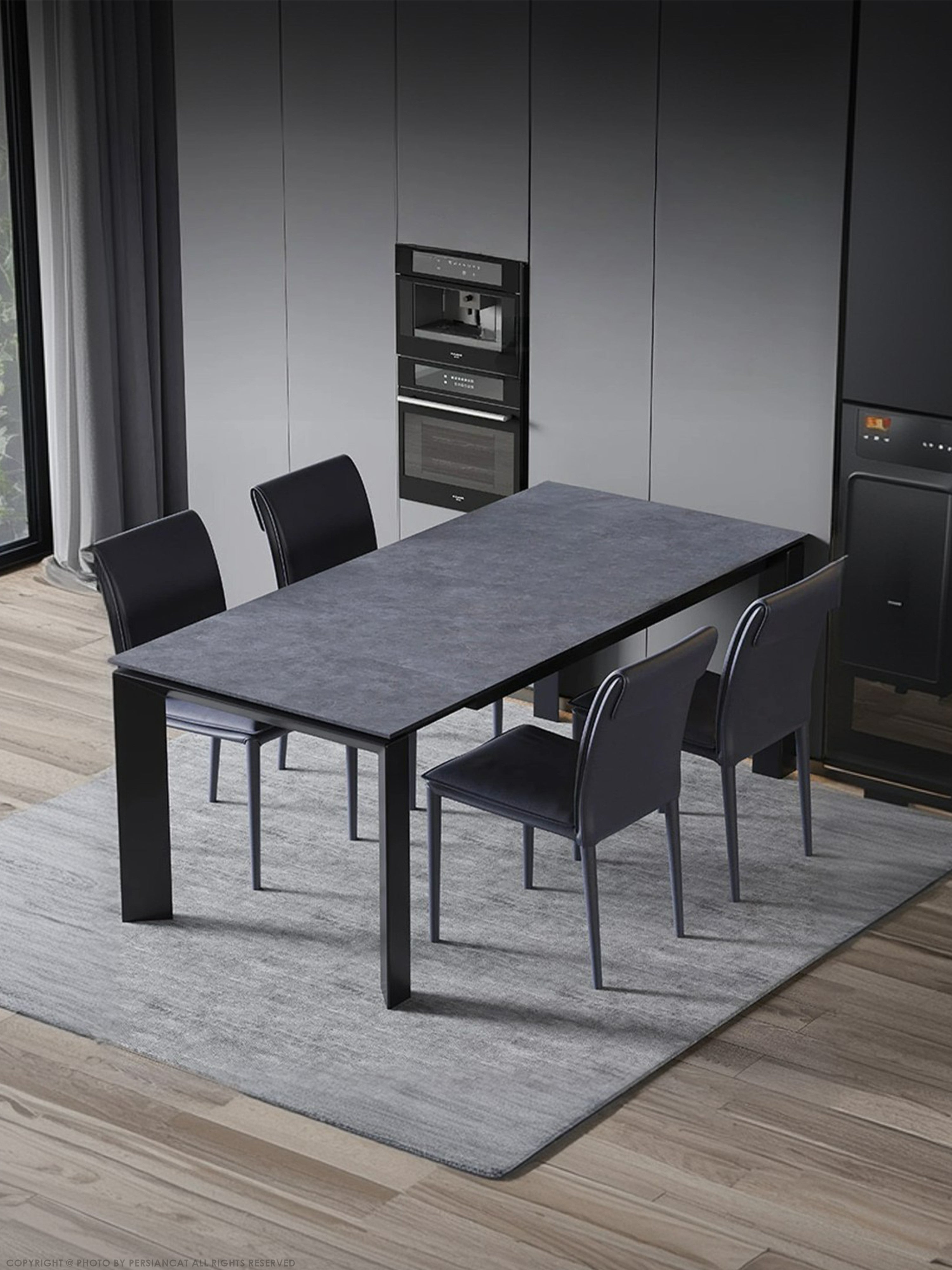 Extendable Dining Table with Sintered Stone Top. Ideal for: Modern homes, dining rooms, and entertaining spaces. Perfect for families and frequent hosts.
