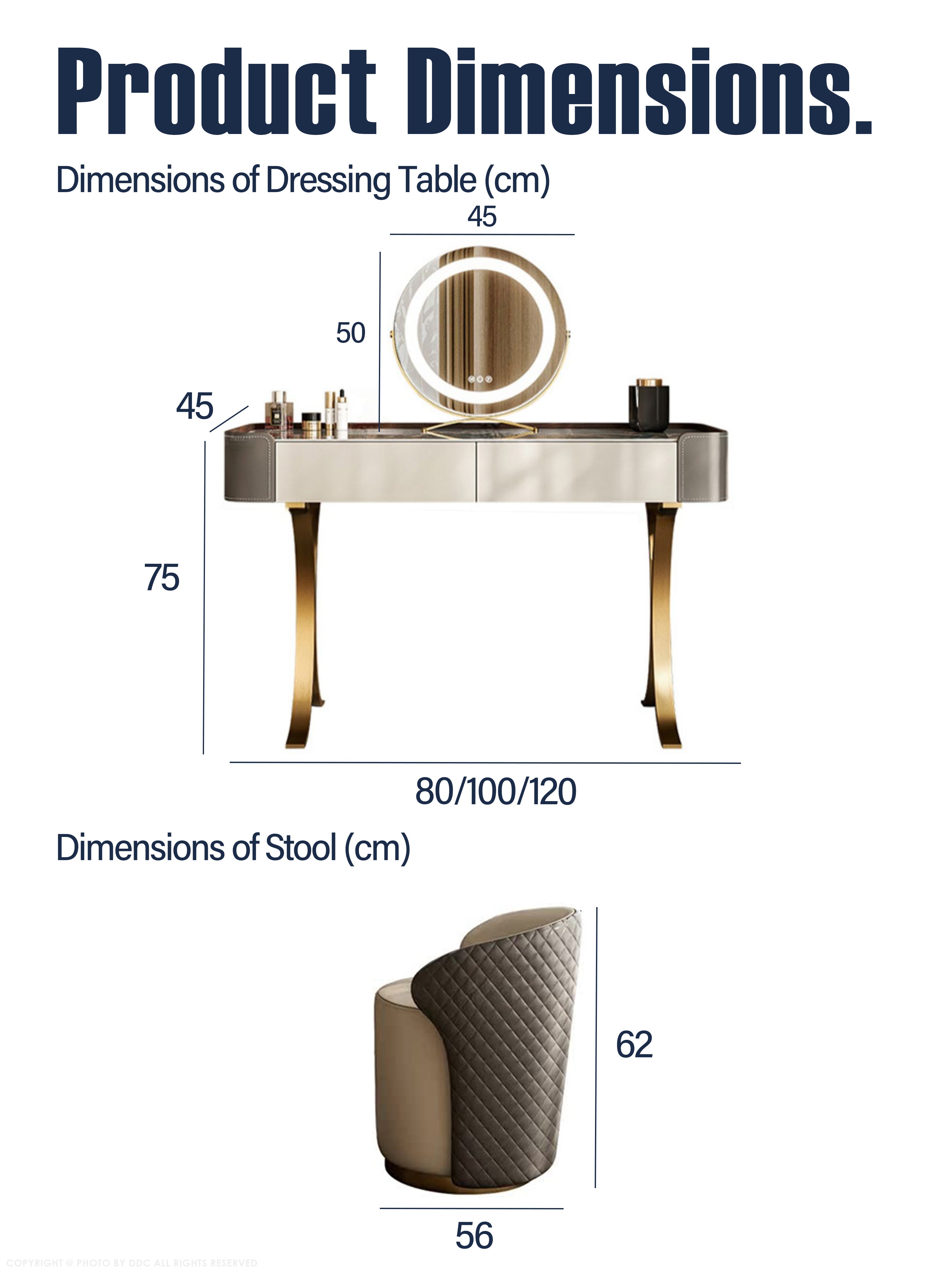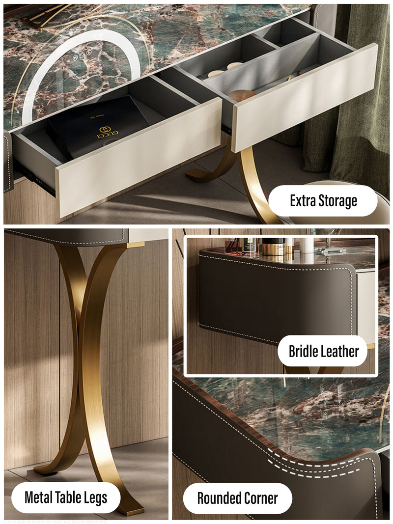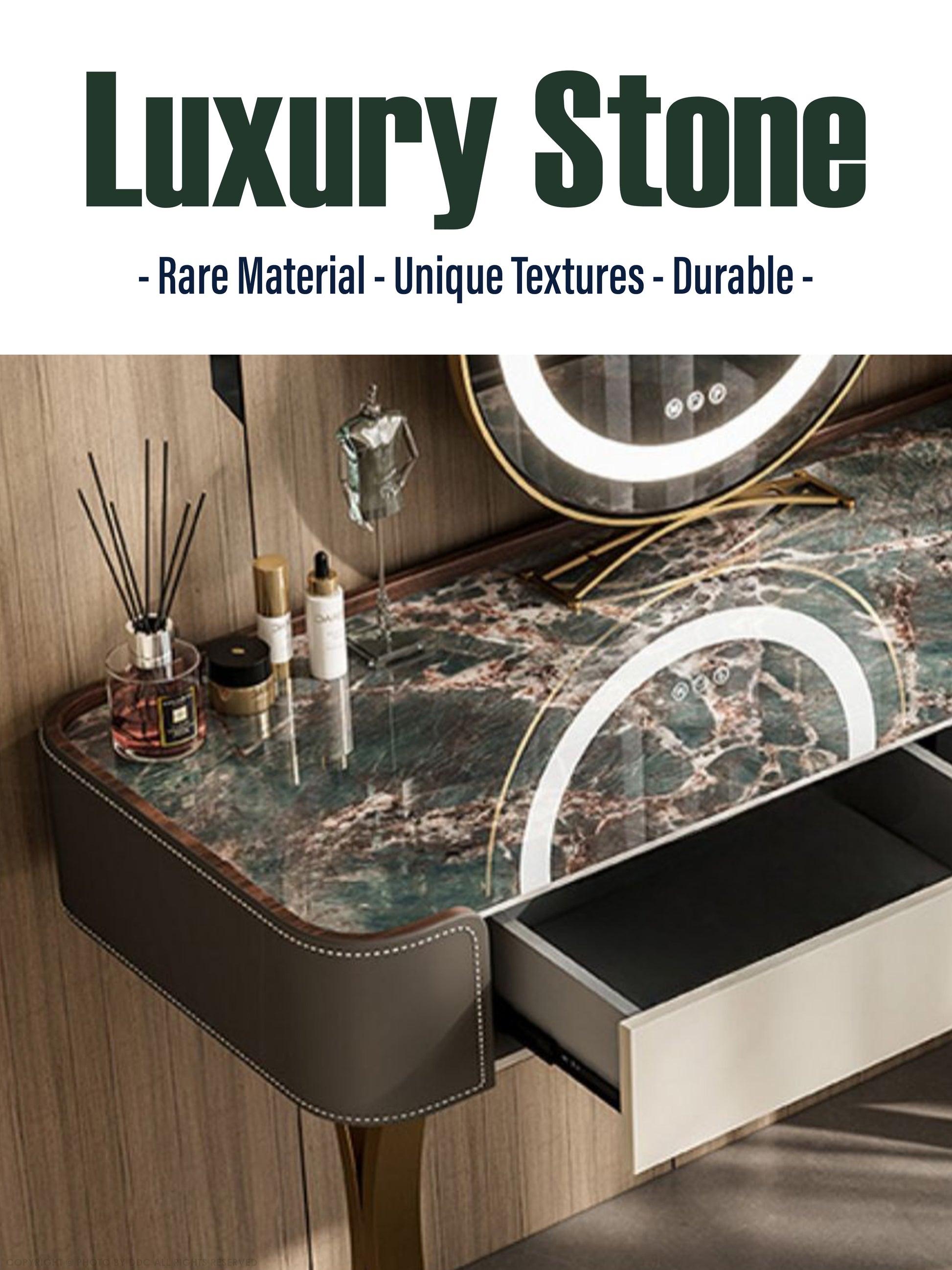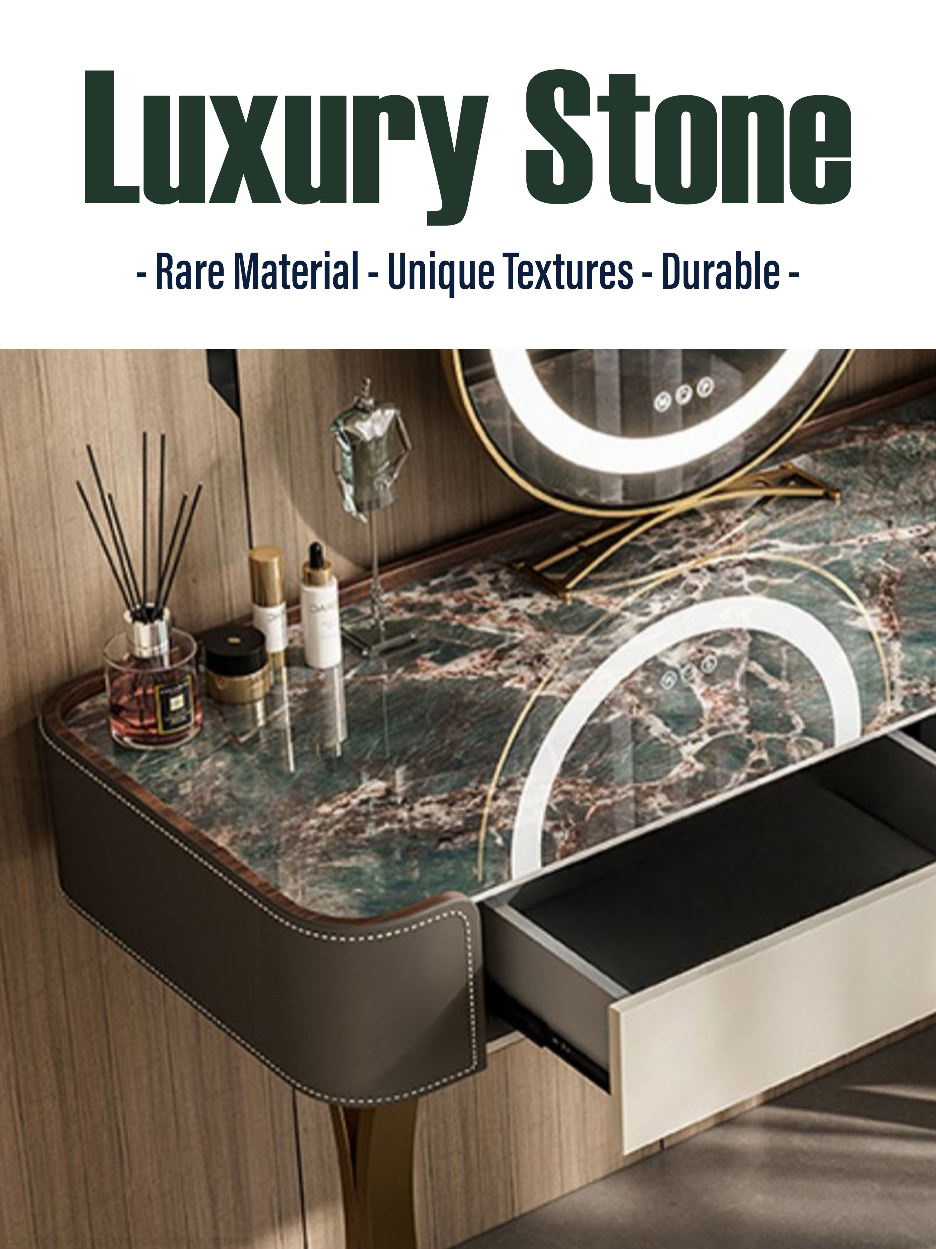 Become the next beauty influencer with our Modern Dressing Table. Its minimalist design, luxurious stone top, and ample storage make it the perfect backdrop for your makeup tutorials and product displays. Perfect for those who love to share their style on social media.