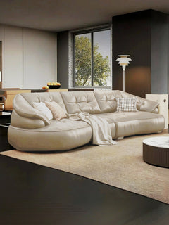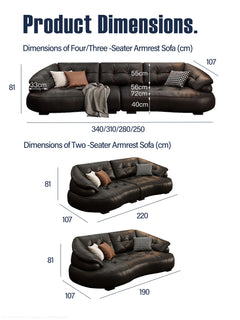 Sink into Luxury with the Cloud-Like Comfort of the Kim Sofa. The unique cloud-like design creates a feeling of weightless relaxation, while the deep seating and supportive cushions invite you to unwind in pure comfort. The straight-row design is perfect for small apartments, maximizing space without sacrificing style.