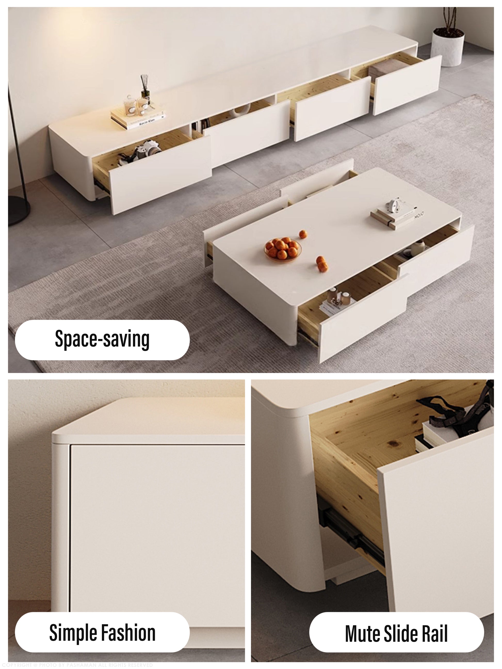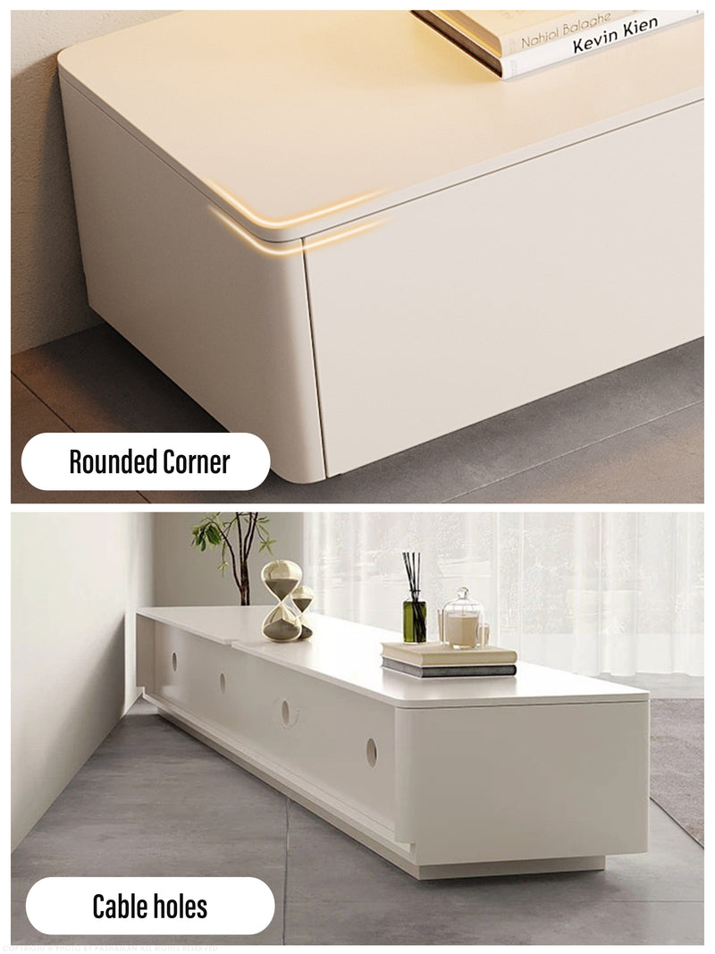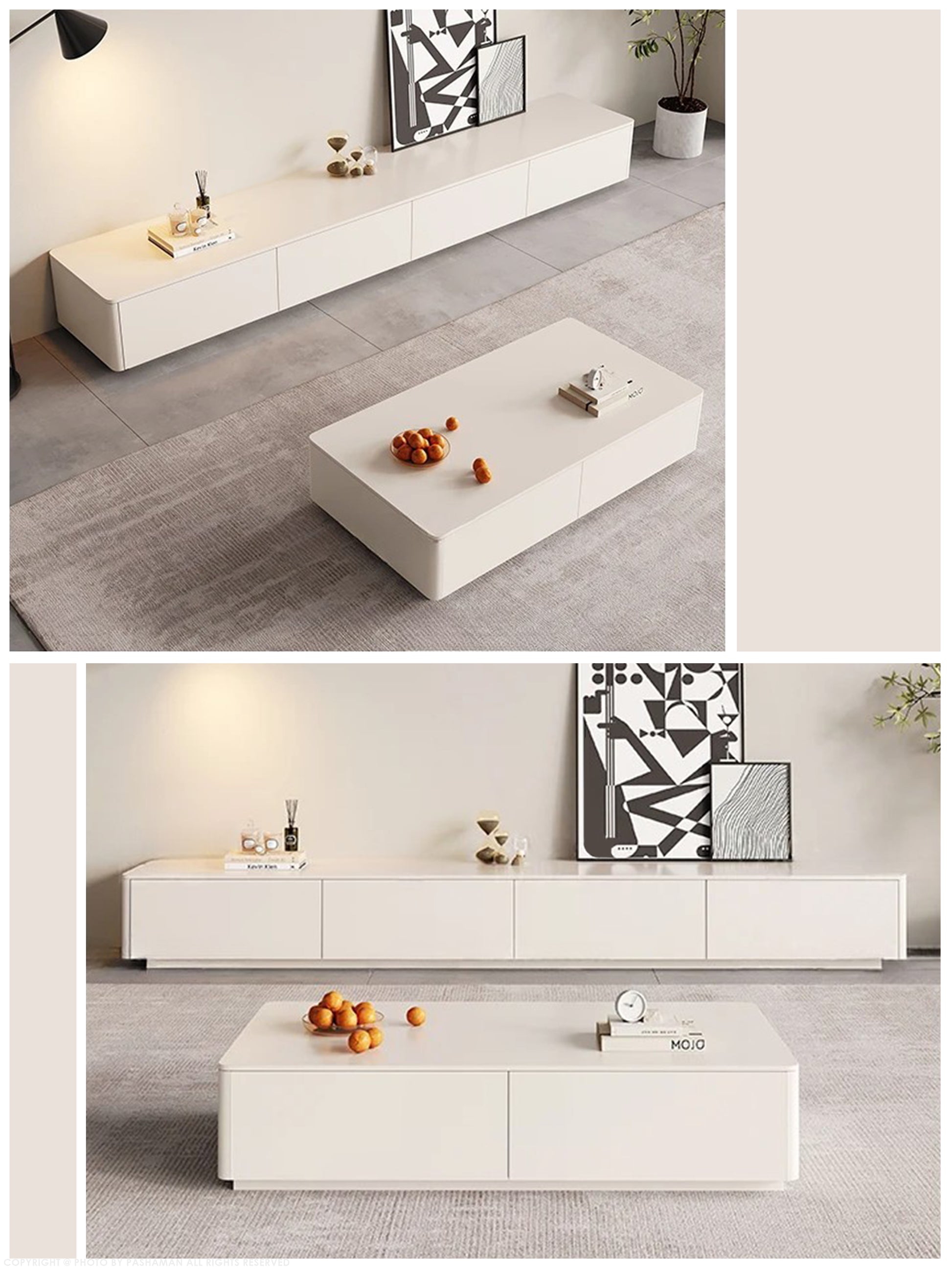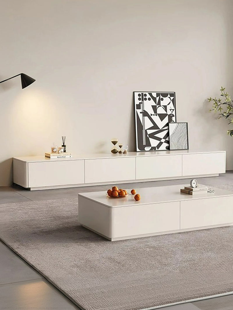 Elevate your living room with our minimalist cream style console. This sleek and versatile piece offers ample storage while its clean lines and minimalist design seamlessly blend with any decor.