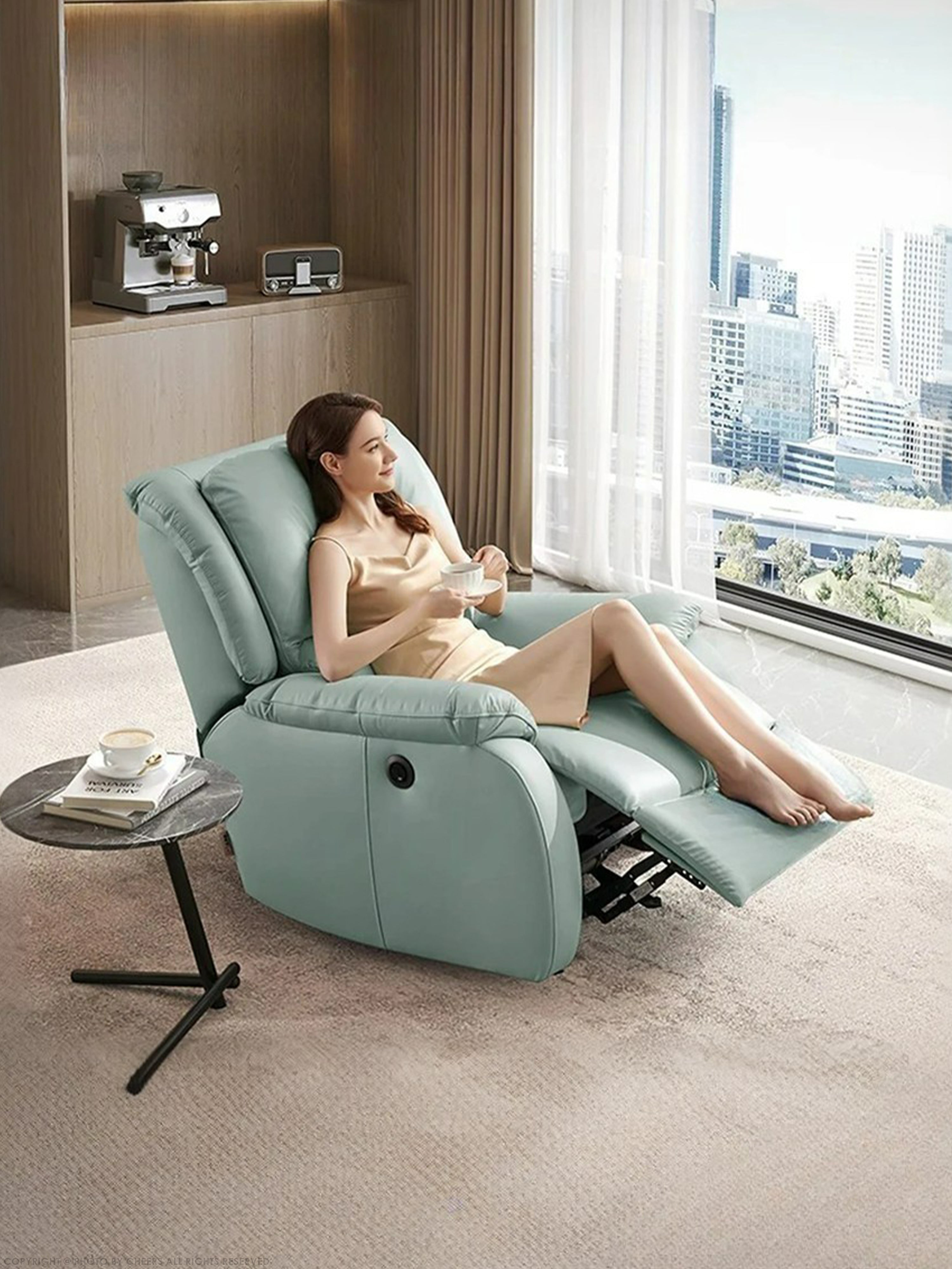 Indulge in ultimate relaxation with our luxurious leather electric recliner sole lounger chair. Crafted from premium quality leather, this chair offers exceptional comfort and durability. The adjustable reclining feature allows you to find the perfect position for optimal relaxation.