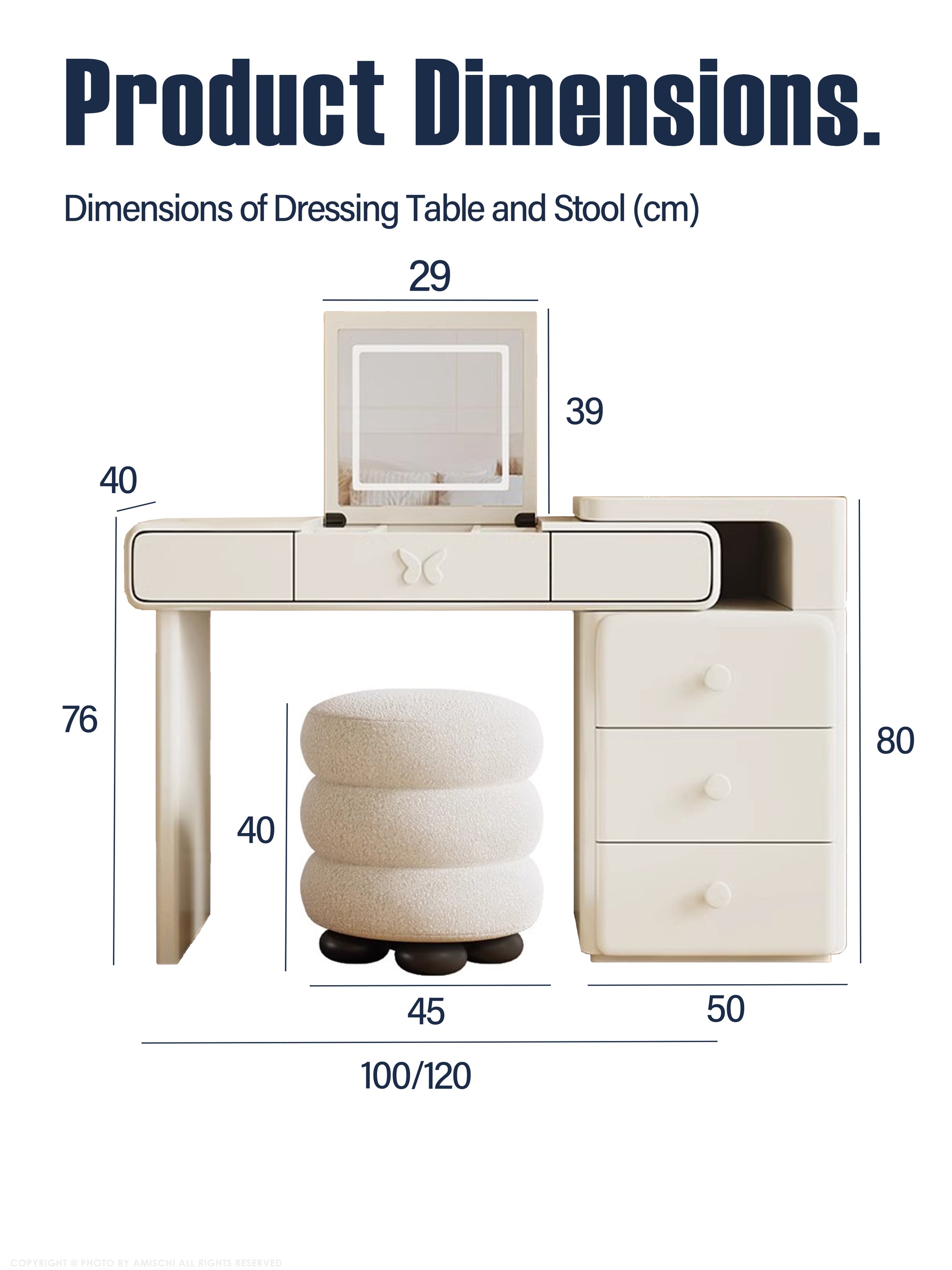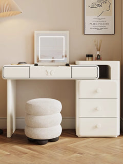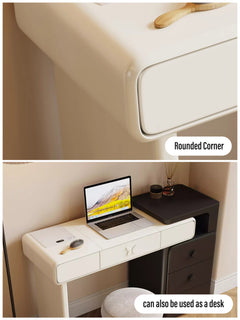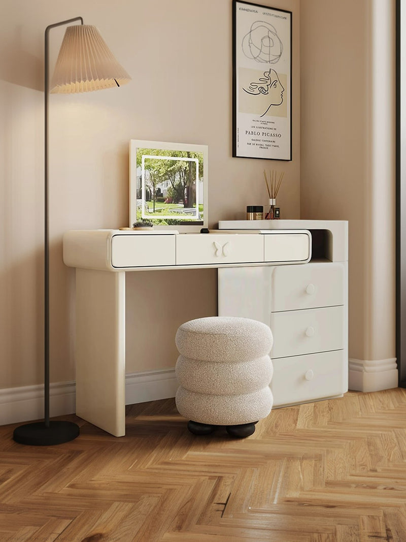 Designed to maximize space in small bedrooms. It combines a dressing table and a chest of drawers into one unit, offering both a place to get ready and ample storage.
