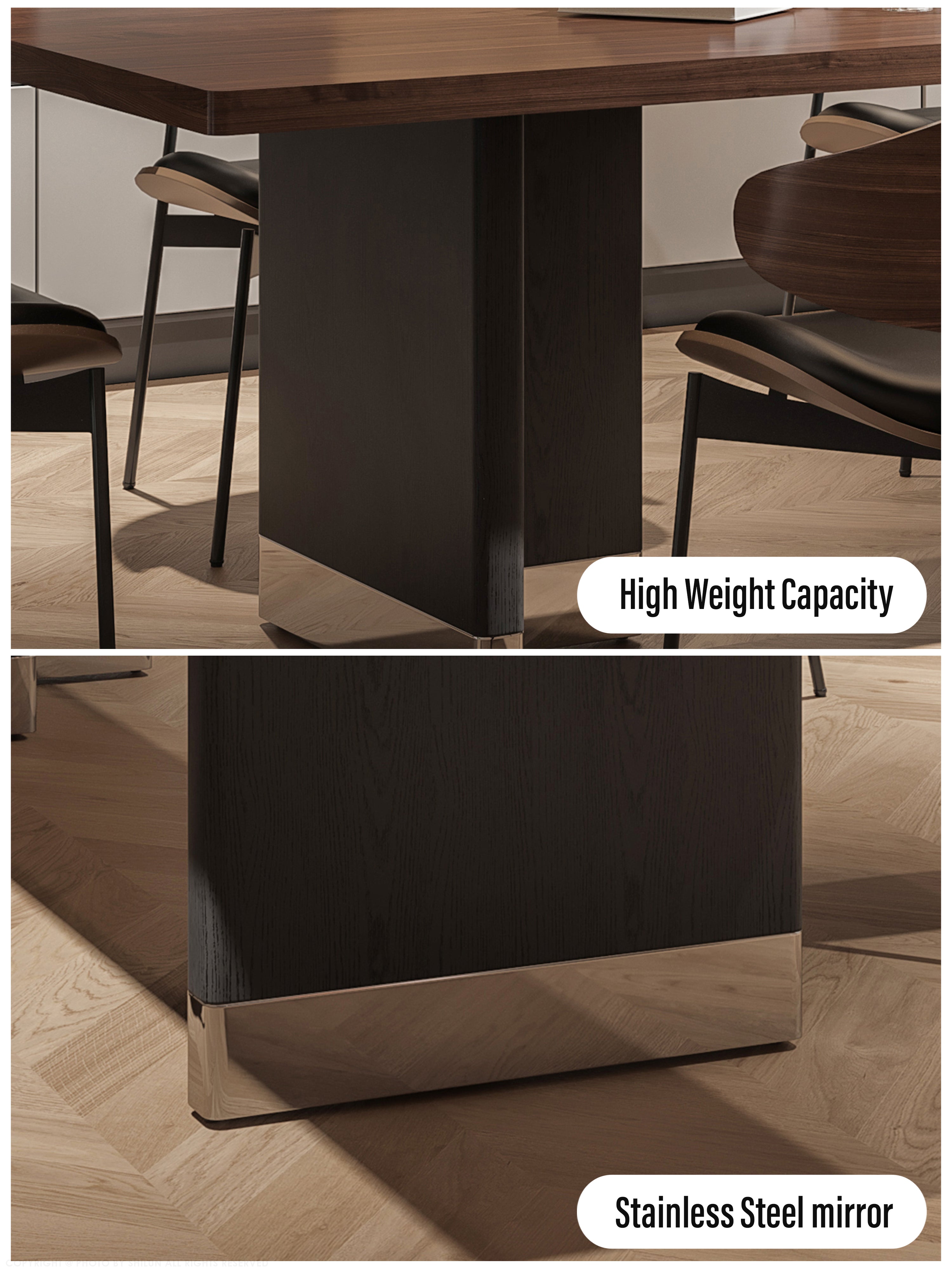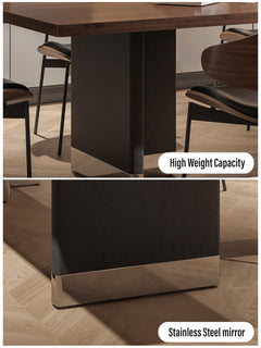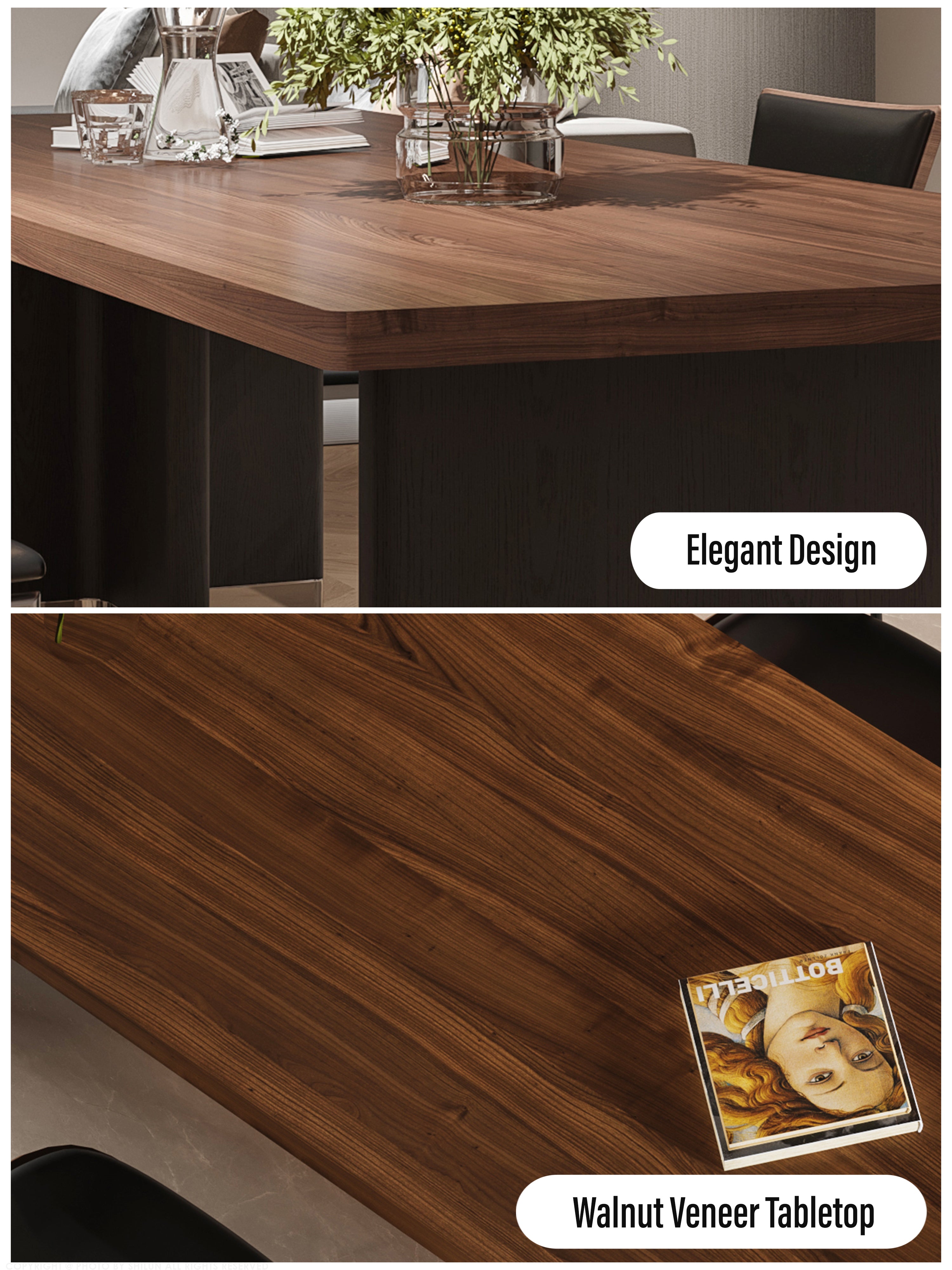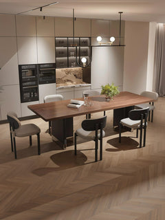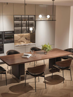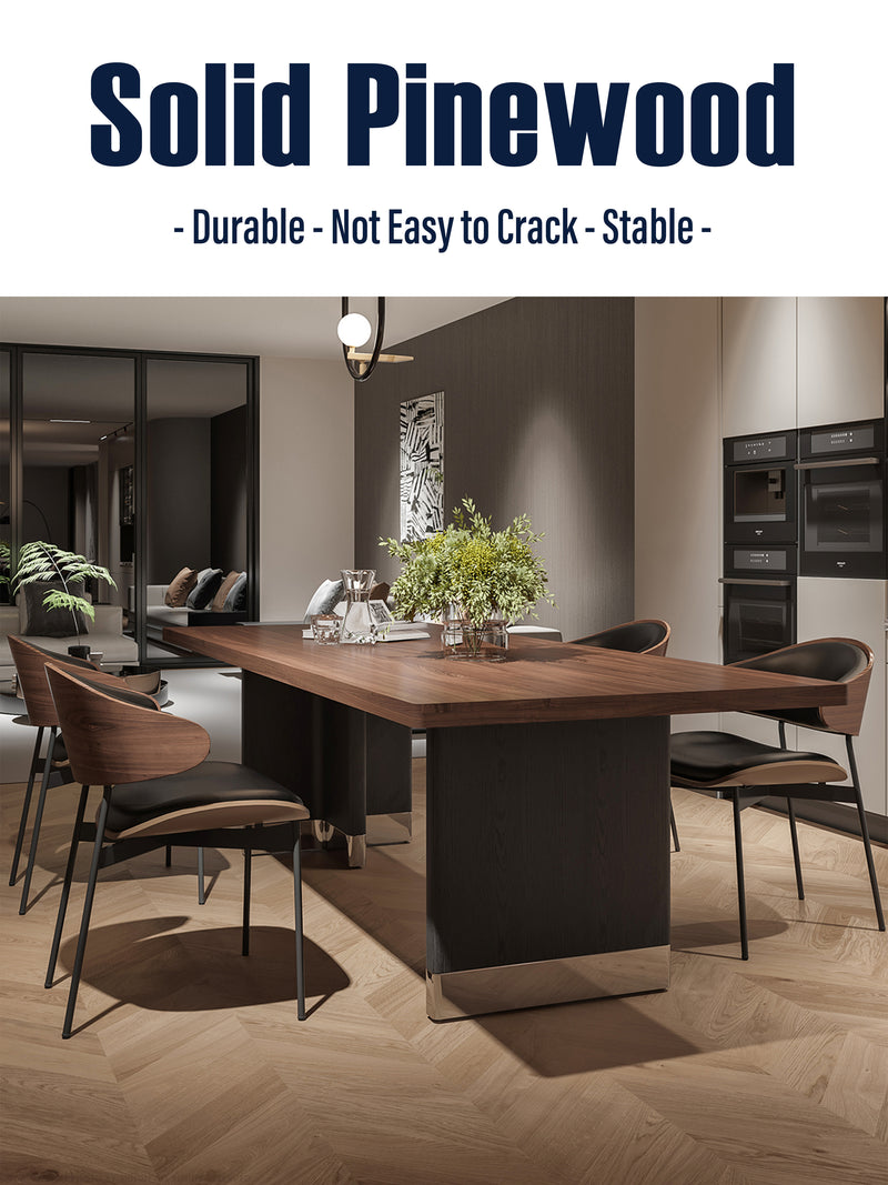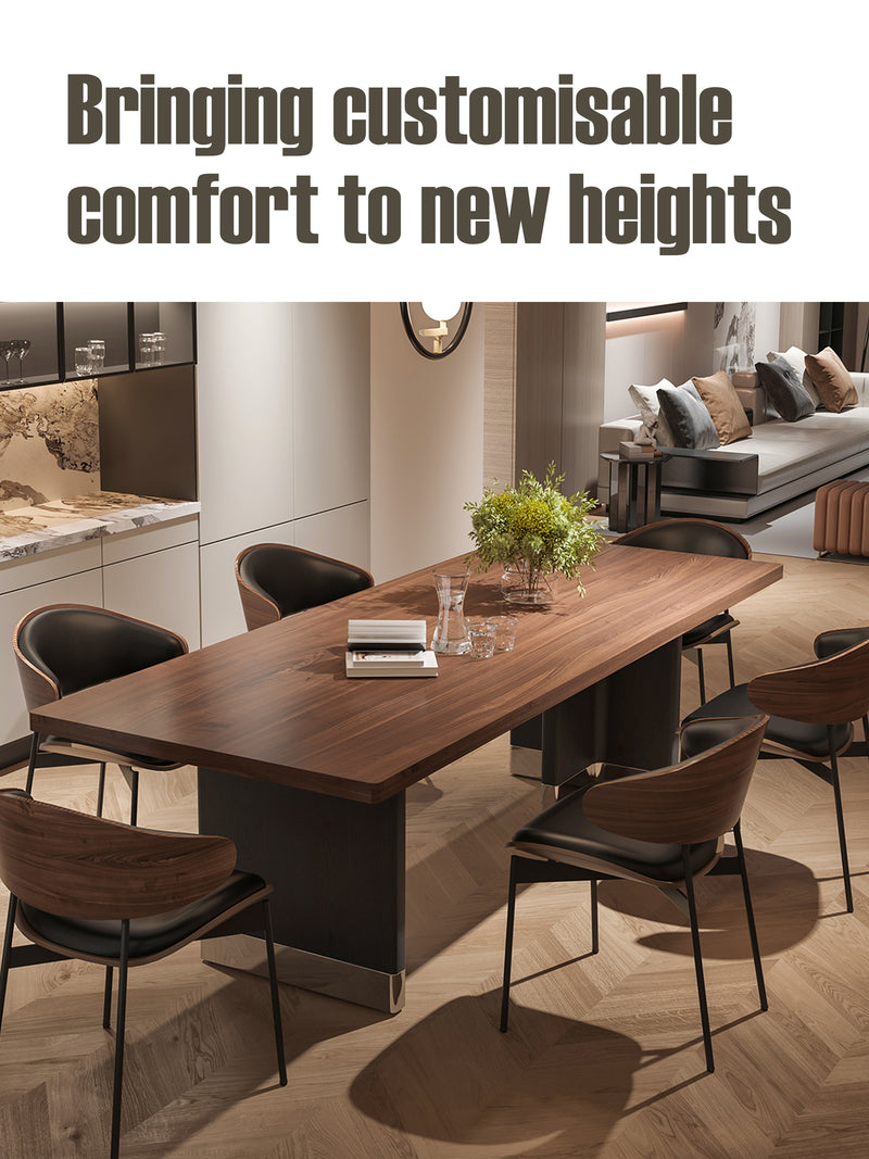 Modern Solid Wood Dining Table with Leather Chairs. Crafted from solid wood and premium leather for durability and elegance. Modern homes, dining rooms, and open-plan living spaces. Perfect for those seeking a stylish and functional dining set.