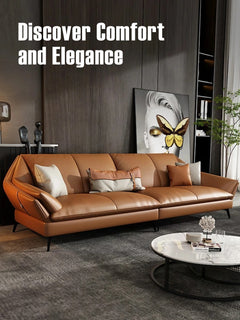 Sink into Unparalleled Luxury with the Nabi Ultra-Soft Leather Sofa. This Italian-inspired minimalist masterpiece elevates your living room with its buttery soft Napa leather upholstery. Experience a new level of comfort with cloud-like cushioning that cradles your body and invites you to unwind in pure bliss. The sleek, minimalist design creates a sense of modern sophistication, while the ultra-soft Napa leather adds a touch of timeless elegance.