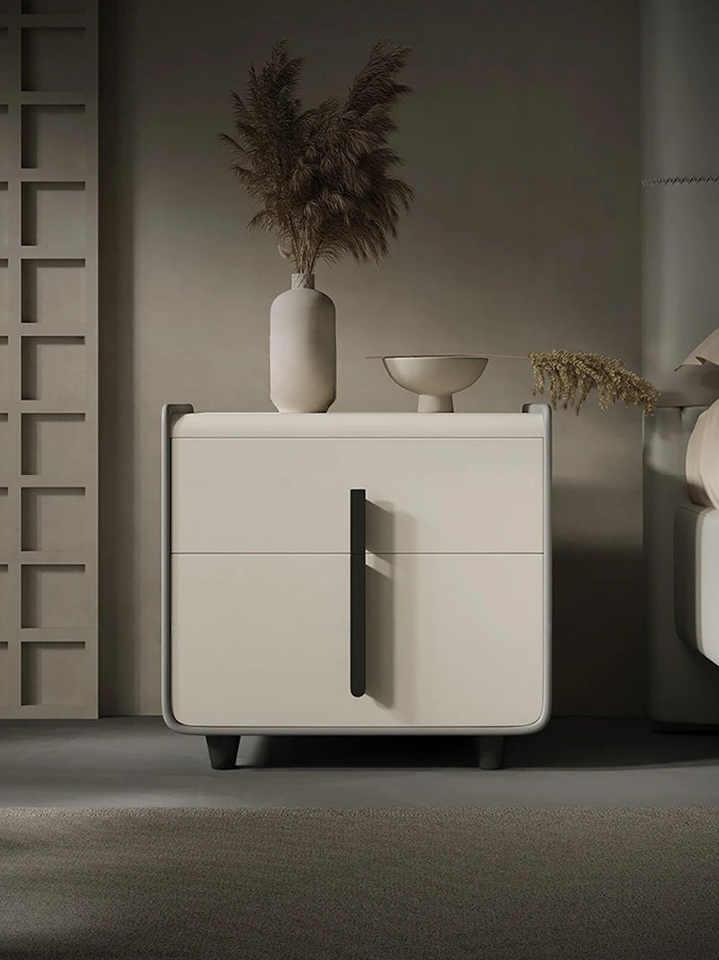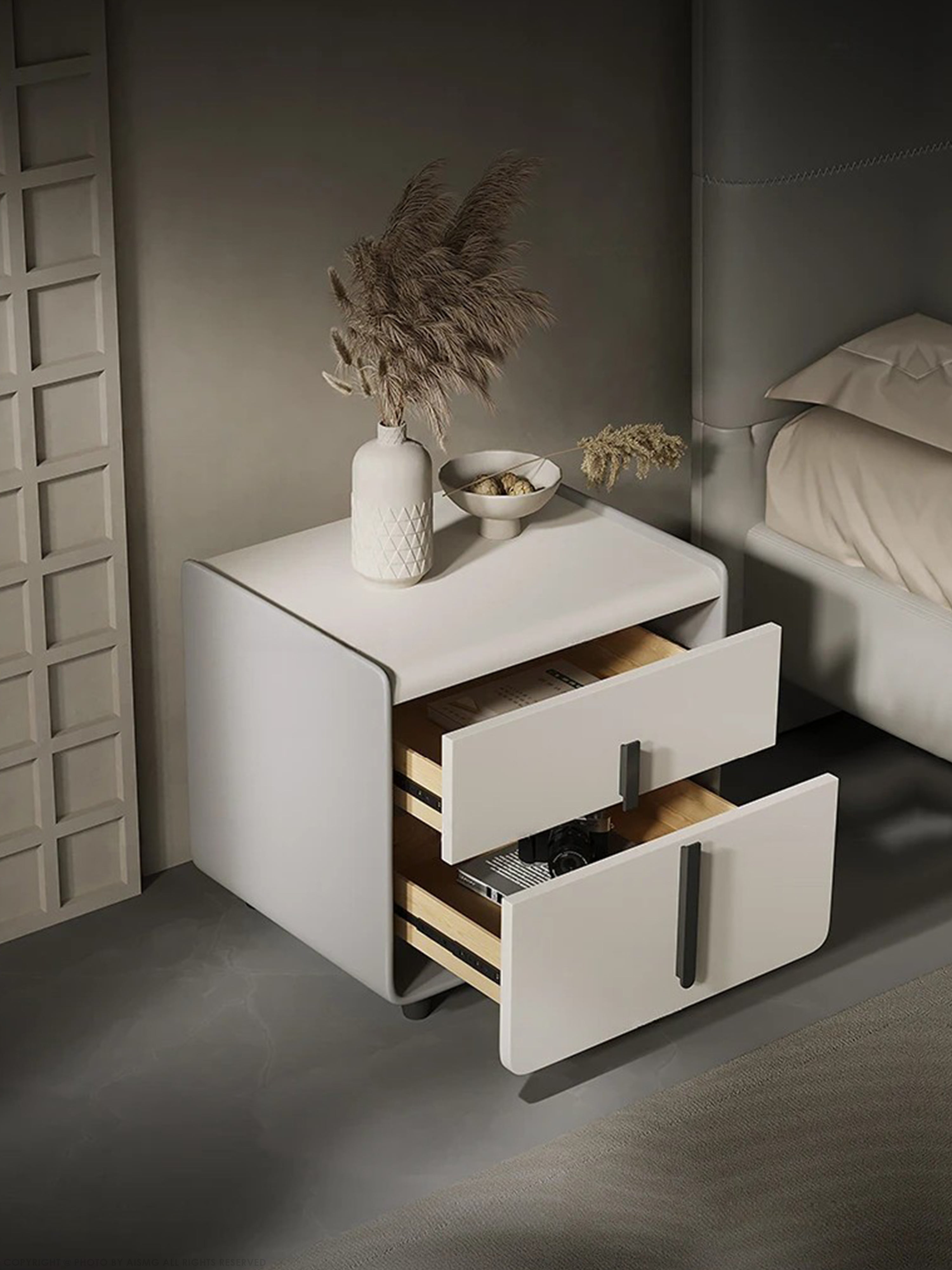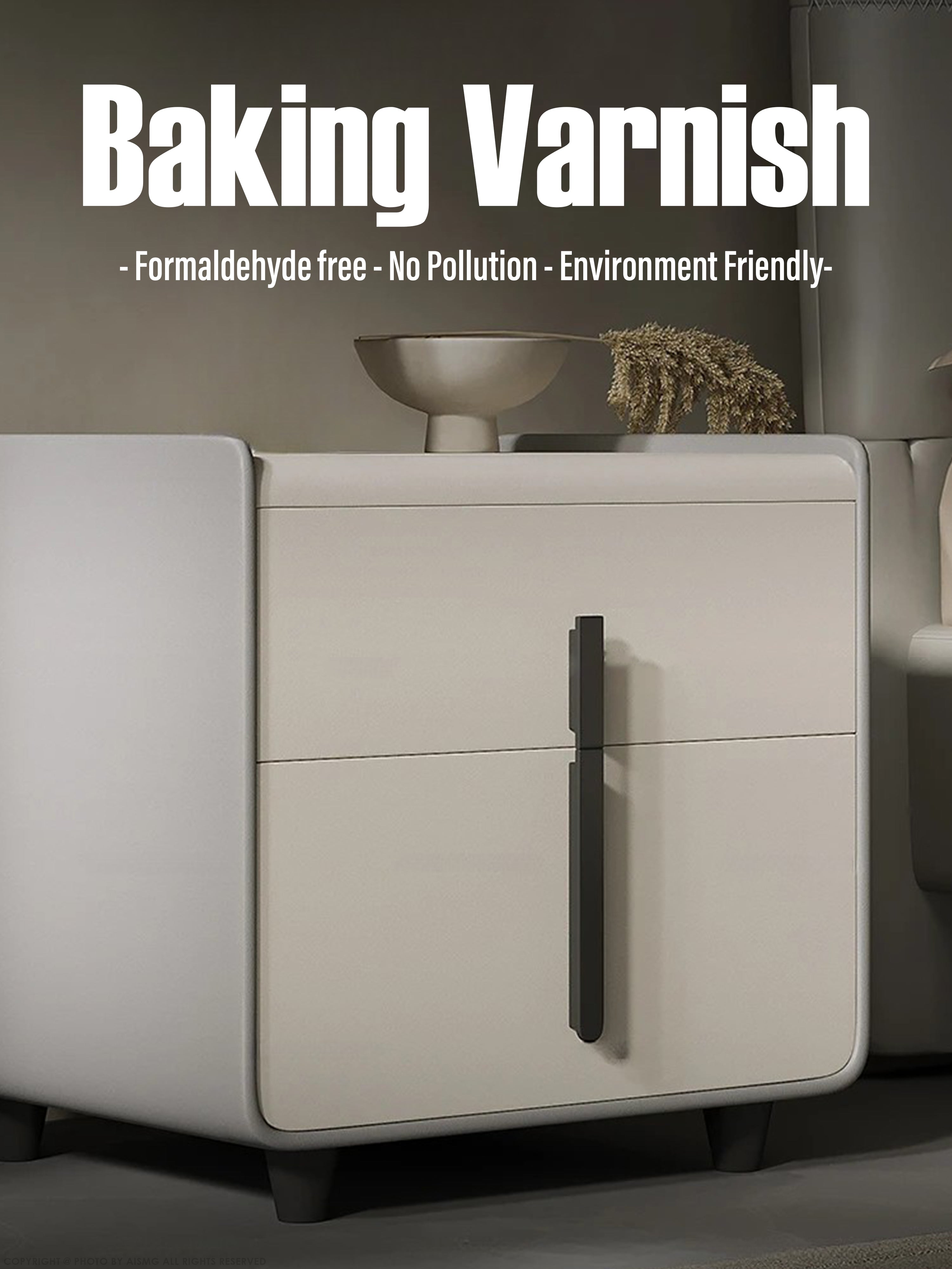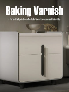 Crafted from solid wood and finished with Italian baking paint, this bedside cabinet offers a blend of elegance and durability. Its sleek design and ample storage space make it the perfect addition to any bedroom, providing a serene and organized space for your nightly essentials.