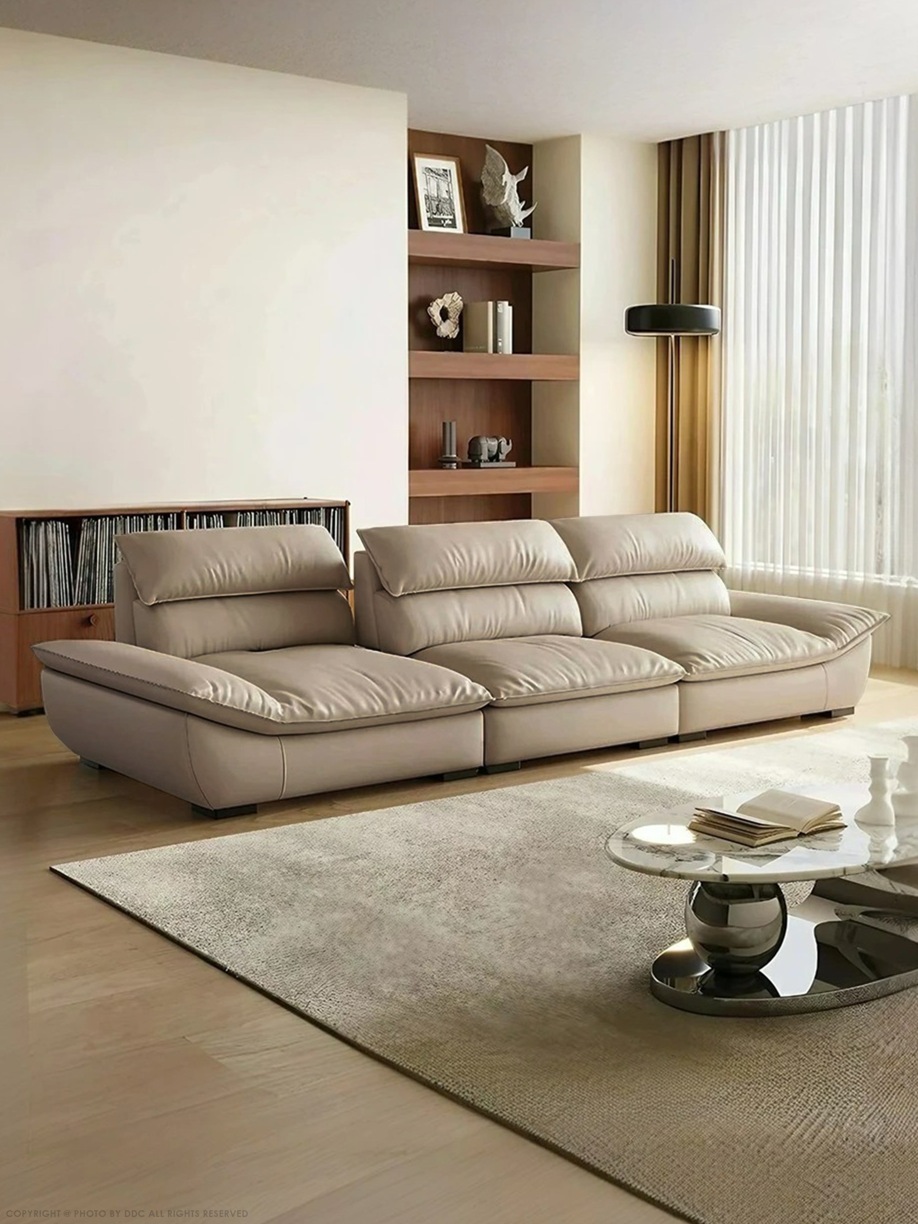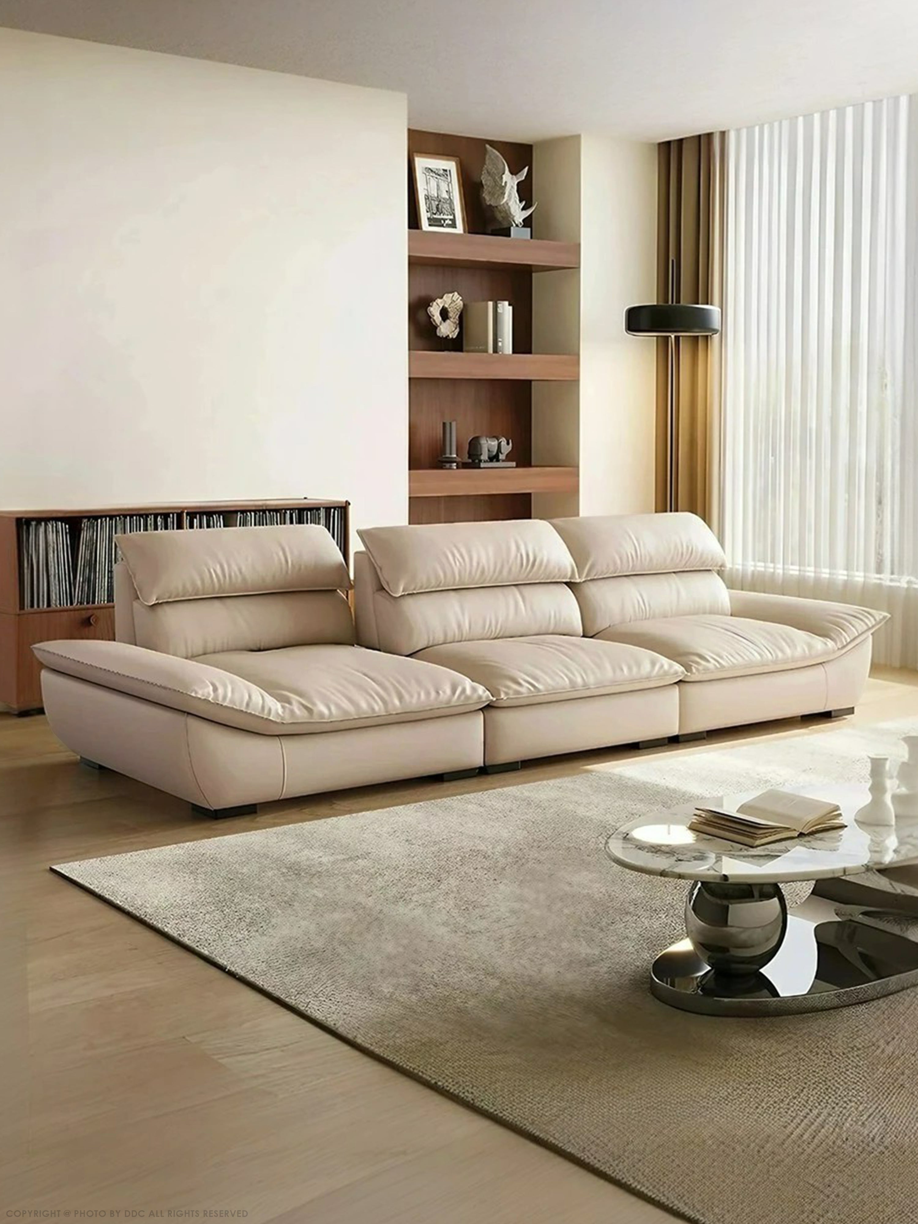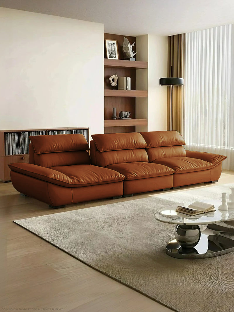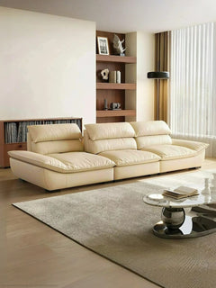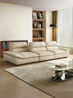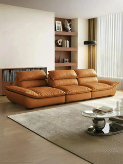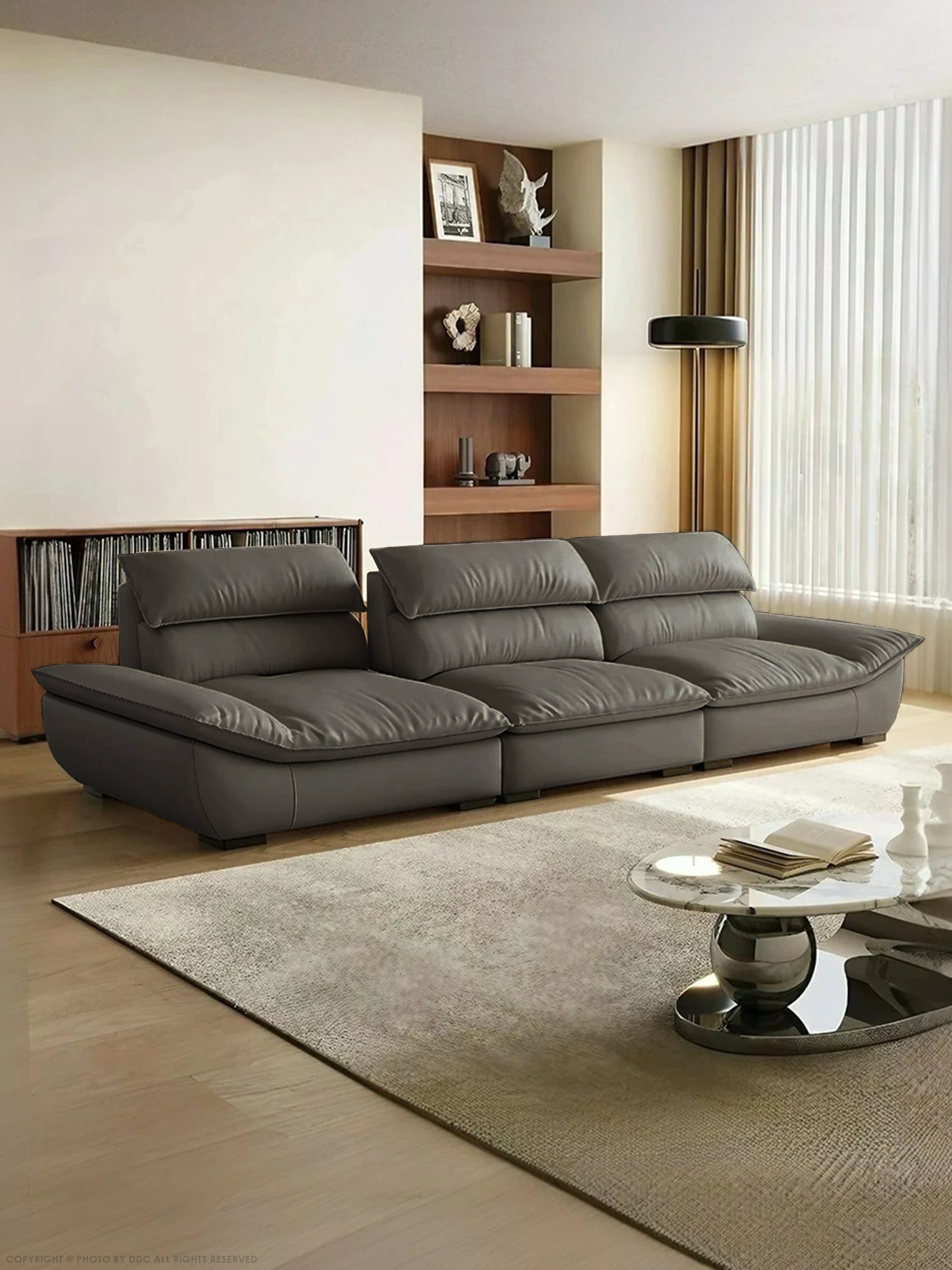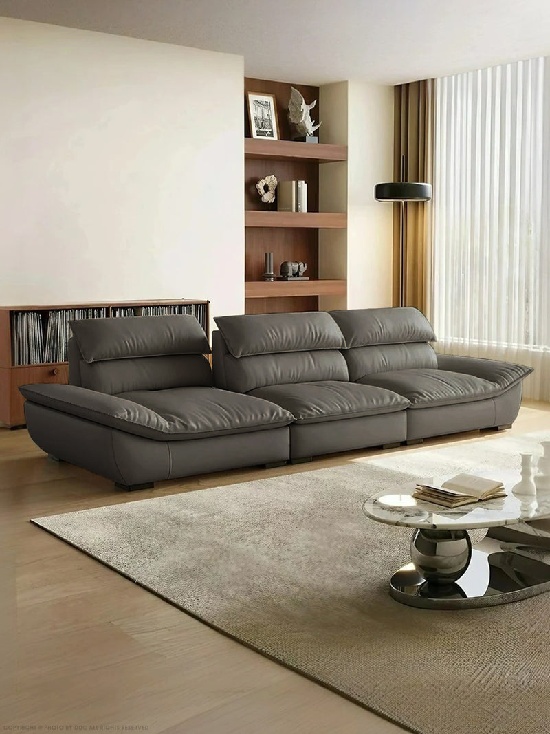 This Italian-inspired modern sofa features luxuriously soft top-grain leather upholstery, inviting you to sink into relaxation. The unique design, reminiscent of a sleek Auckland sailboat, adds a touch of nautical flair to your living room. The adjustable backrest allows you to customize your comfort level, making this sofa the perfect spot to unwind after a long day.
