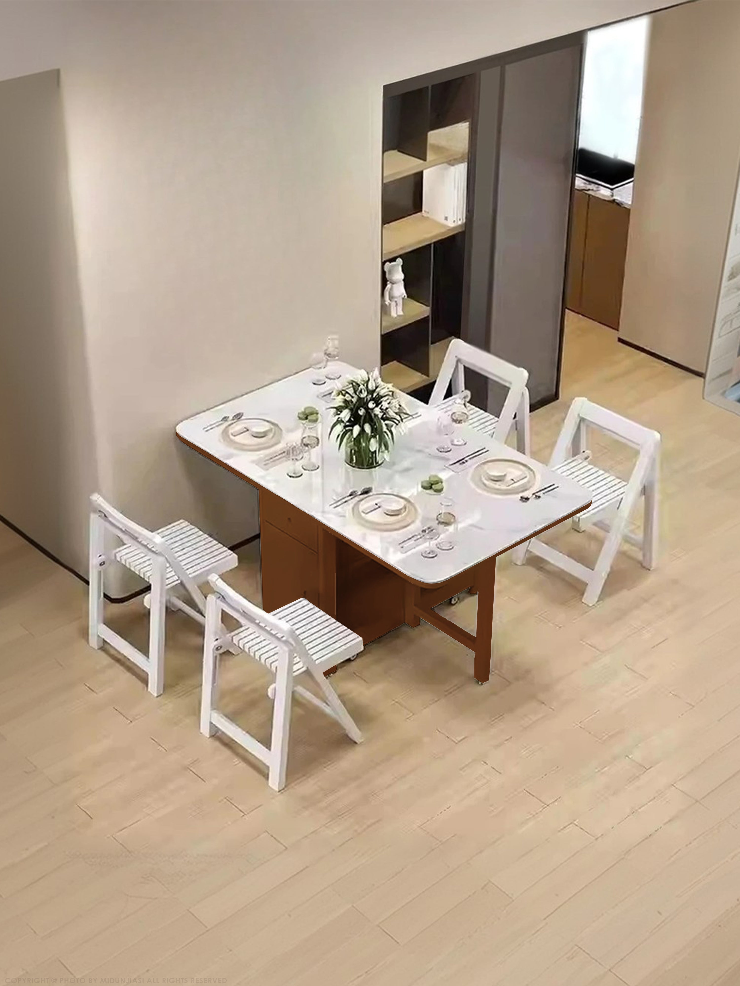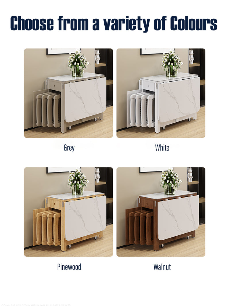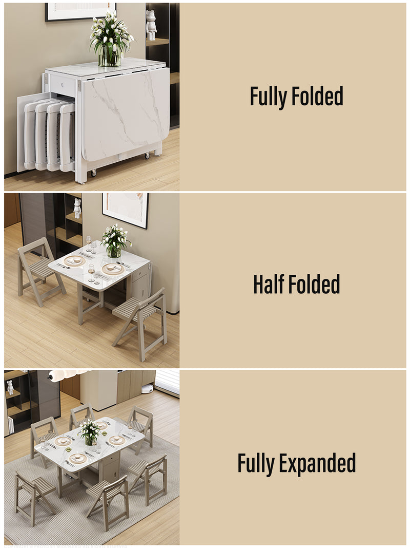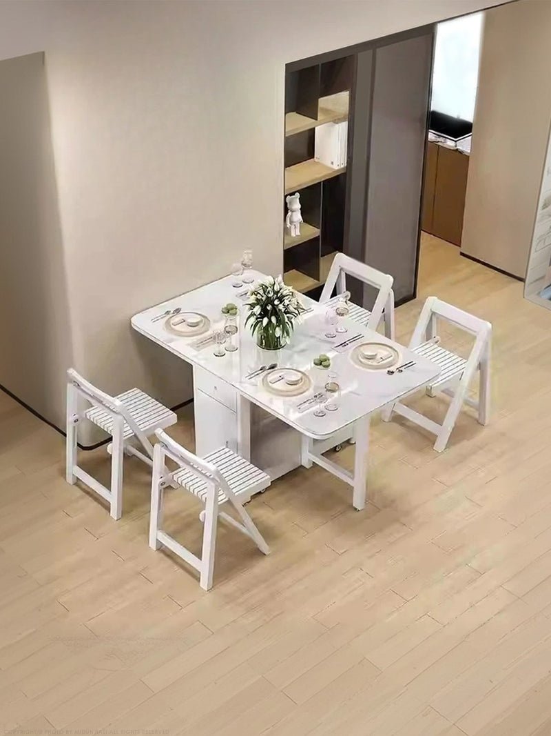 Folding Dining Table with Built-in Chairs. Ideal for Small apartments, condos, or homes with limited space. Perfect for families and individuals who need a versatile dining solution.