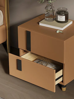 Crafted from solid wood and wrapped in luxurious leather, Una Luxury Bedside Cabinet is a testament to refined elegance. Its sleek design and ample storage space make it the perfect addition to any modern bedroom.